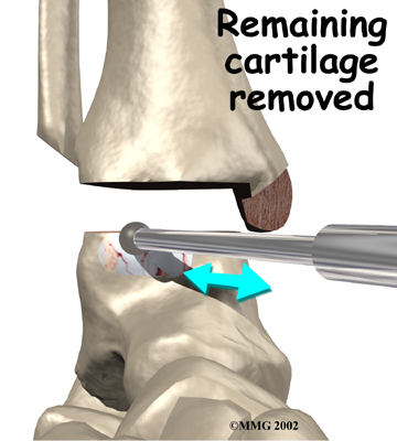 Several different operations have been developed to perform an ankle fusion. The basic procedure in each operation remains the same, however. The most common way that an ankle fusion is done is by making an incision through the skin to open the joint. Once the joint is opened, the surgeon uses a surgical saw to remove the articular cartilage surfaces of the ankle joint. Once the articular cartilage is removed on both sides of the joint, the body will try to heal the two surfaces together just as if it were fractured or broken.